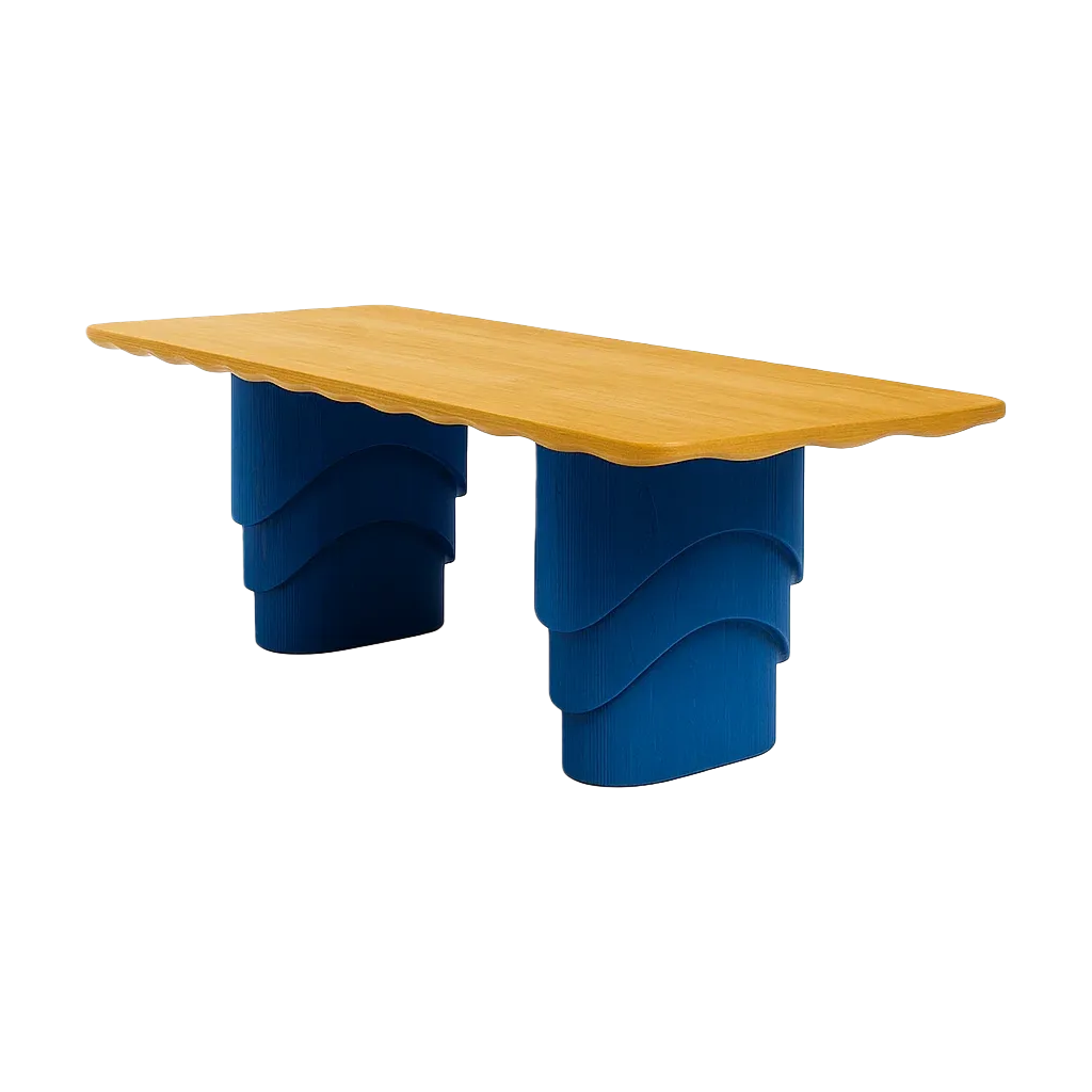 Tables à manger rectangulaires en bois avec pieds ondulés en bois